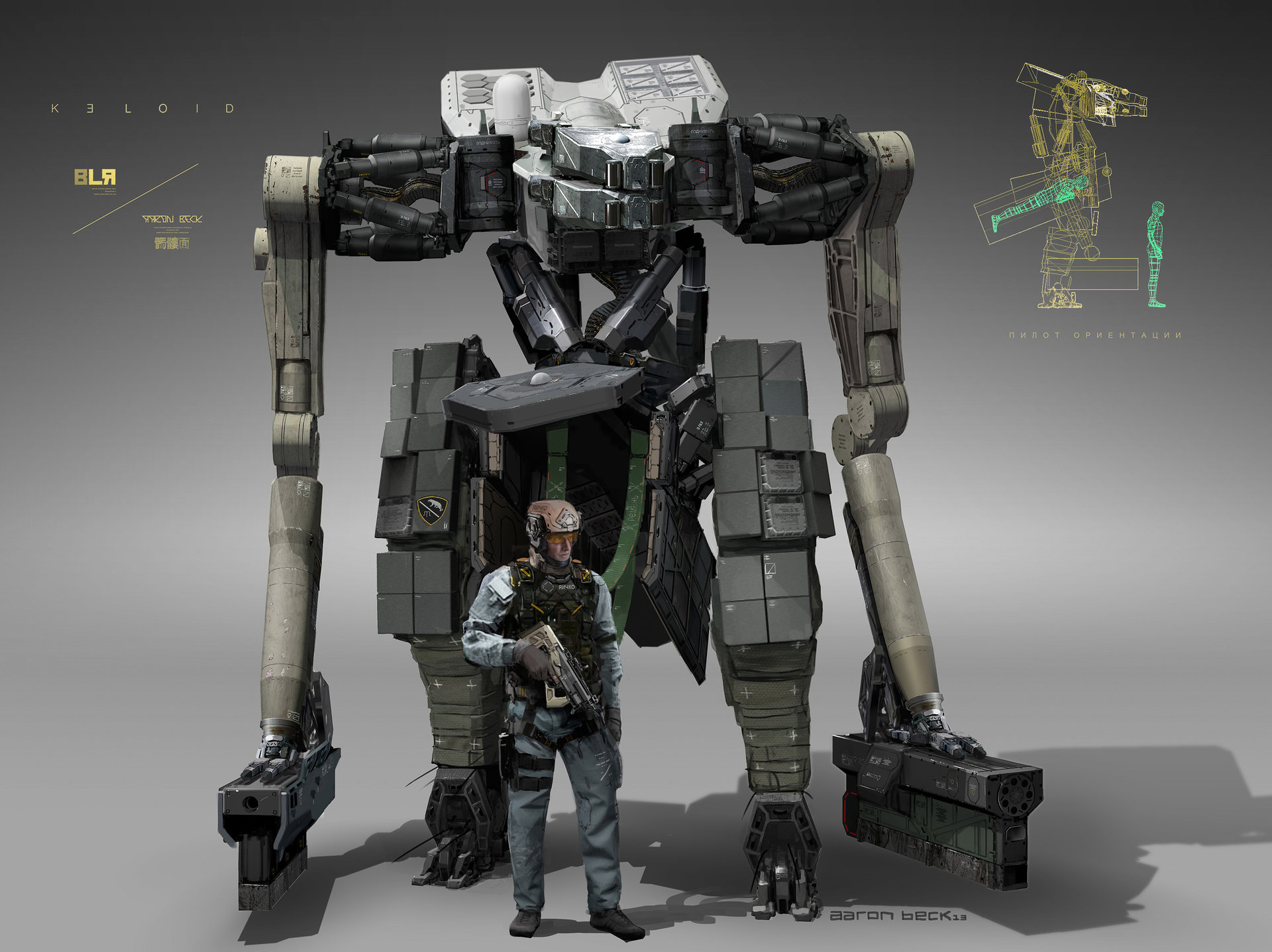 Aaron Beck is a New Zealand born Conceptual Designer known for his iconic and unique work in the film and video game industries. A life-long love of nature, science, and mechanics have helped him create a unique aesthetic based on an application of functional real-world technical solutions pushed into the realm of futuristic science fiction.